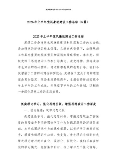 【七哥公文】2025年:【七哥公文】(5篇)2025年上半年党风廉政建设工作总结+更多免费公文+VX:QiGeGongWen2024+更多免费公文+VX:QiGeGongWen2024