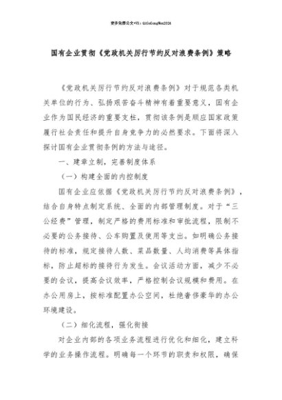 【七哥公文】2025年:【七哥公文】国有企业贯彻《党政机关厉行节约反对浪费条例》策略+更多免费公文+VX:QiGeGongWen2024+更多免费公文+VX:QiGeGongWen2024