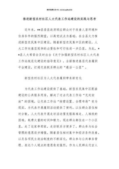 【七哥公文】2025年:【七哥公文】推进新型农村社区人大代表工作站建设的实践与思考+更多免费公文+VX:QiGeGongWen2024+更多免费公文+VX:QiGeGongWen2024