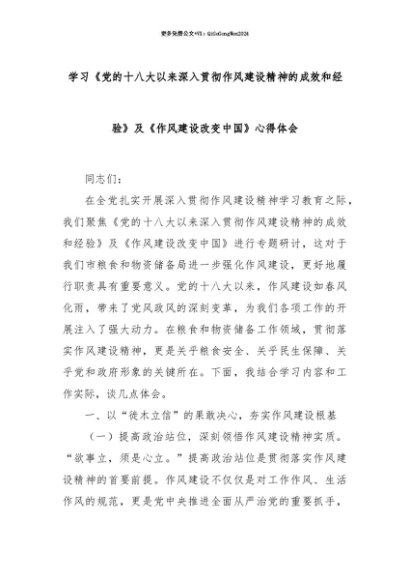 【七哥公文】2025年:【七哥公文】学习《党的十八大以来深入贯彻作风建设精神的成效和经验》及《作风建设改变中国》心得体会+更多免费公文+VX:QiGeGongWen2024+更多免费公文+VX:QiGeGongWen2024