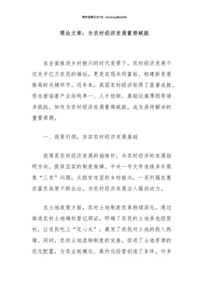 【七哥公文】2025年:【七哥公文】理论文章:为农村经济发展蓄势赋能+更多免费公文+VX:QiGeGongWen2024+更多免费公文+VX:QiGeGongWen2024