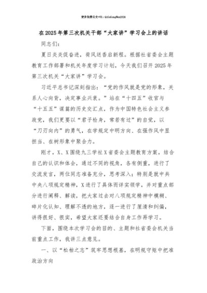 【七哥公文】2025年:【七哥公文】在2025年第三次机关干部“大家讲”学习会上的讲话+更多免费公文+VX:QiGeGongWen2024+更多免费公文+VX:QiGeGongWen2024