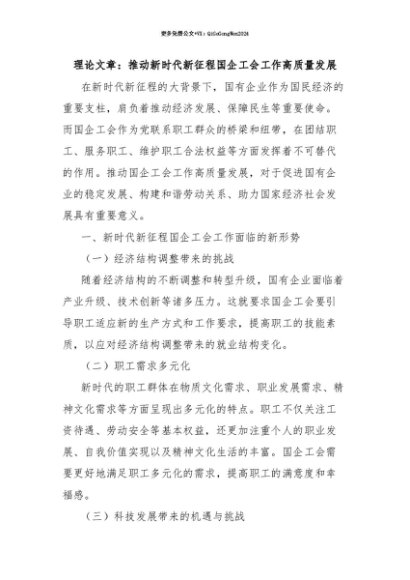 【七哥公文】2025年:【七哥公文】理论文章:推动新时代新征程国企工会工作高质量发展+更多免费公文+VX:QiGeGongWen2024+更多免费公文+VX:QiGeGongWen2024