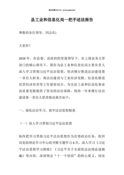 【七哥公文】2025年:【七哥公文】县工业和信息化局一把手述法报告+更多免费公文+VX:QiGeGongWen2024+更多免费公文+VX:QiGeGongWen2024