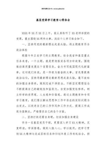 【七哥公文】2025年:【七哥公文】基层党课学习教育心得体会+更多免费公文+VX:QiGeGongWen2024+更多免费公文+VX:QiGeGongWen2024