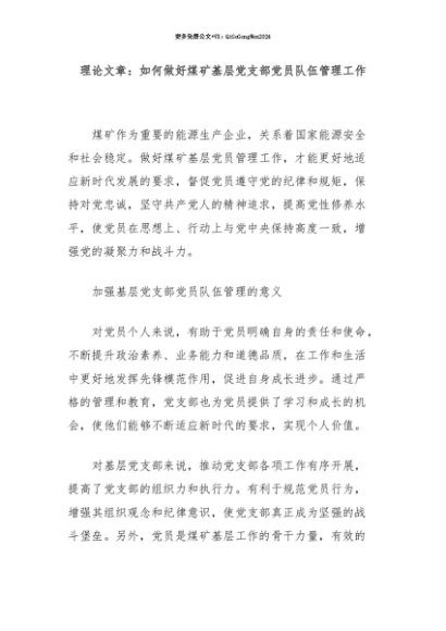 【七哥公文】2025年:【七哥公文】理论文章:如何做好煤矿基层党支部党员队伍管理工作+更多免费公文+VX:QiGeGongWen2024+更多免费公文+VX:QiGeGongWen2024