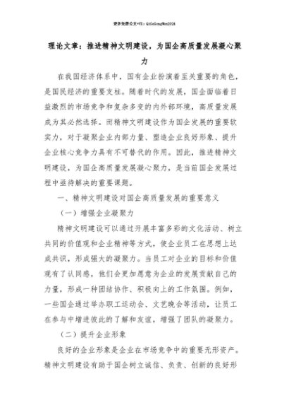 【七哥公文】2025年:【七哥公文】理论文章:推进精神文明建设,为国企高质量发展凝心聚力+更多免费公文+VX:QiGeGongWen2024+更多免费公文+VX:QiGeGongWen2024