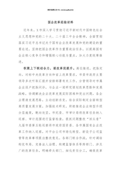【七哥公文】2025年:【七哥公文】国企改革经验材料+更多免费公文+VX:QiGeGongWen2024+更多免费公文+VX:QiGeGongWen2024