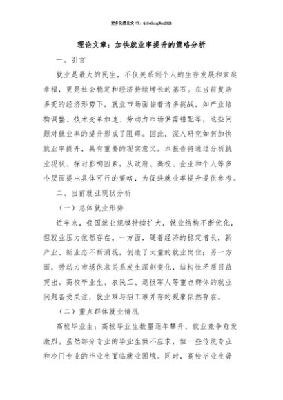 【七哥公文】2025年:【七哥公文】理论文章:加快就业率提升的策略分析+更多免费公文+VX:QiGeGongWen2024+更多免费公文+VX:QiGeGongWen2024