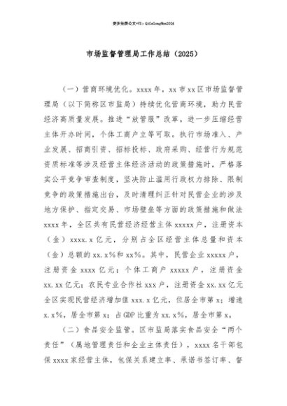 【七哥公文】2025年:【七哥公文】市场监督管理局工作总结(2025)+更多免费公文+VX:QiGeGongWen2024+更多免费公文+VX:QiGeGongWen2024