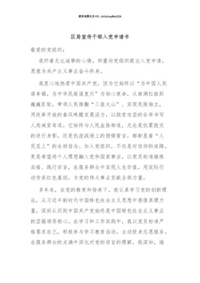 【七哥公文】2025年:【七哥公文】区局宣传干部入党申请书+更多免费公文+VX:QiGeGongWen2024+更多免费公文+VX:QiGeGongWen2024