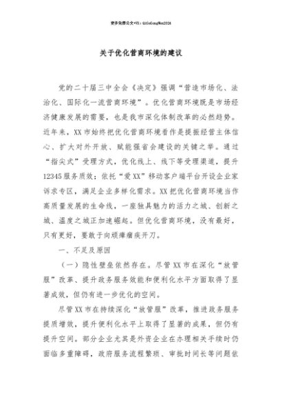 【七哥公文】2025年:【七哥公文】关于优化营商环境的建议+更多免费公文+VX:QiGeGongWen2024+更多免费公文+VX:QiGeGongWen2024