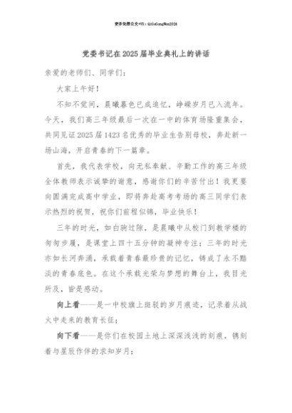 【七哥公文】2025年:【七哥公文】党委书记在2025届毕业典礼上的讲话+更多免费公文+VX:QiGeGongWen2024+更多免费公文+VX:QiGeGongWen2024