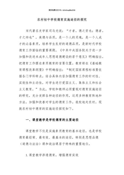 【七哥公文】2025年:【七哥公文】农村初中学校德育实施途径的探究+更多免费公文+VX:QiGeGongWen2024+更多免费公文+VX:QiGeGongWen2024