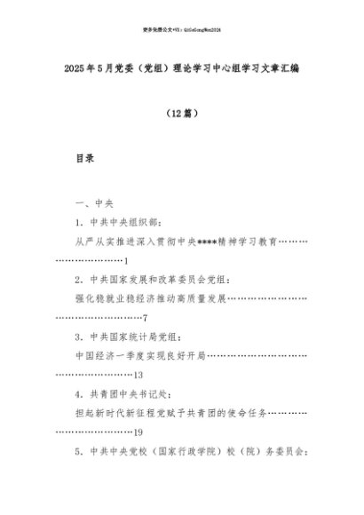 【七哥公文】2025年:【七哥公文】(12篇)2025年5月党委(党组)理论学习中心组学习文章汇编+更多免费公文+VX:QiGeGongWen2024+更多免费公文+VX:QiGeGongWen2024