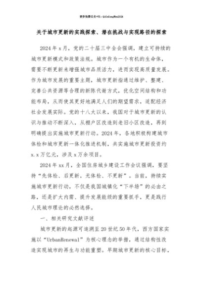 【七哥公文】2025年:【七哥公文】关于城市更新的实践探索、潜在挑战与实现路径的探索+更多免费公文+VX:QiGeGongWen2024+更多免费公文+VX:QiGeGongWen2024