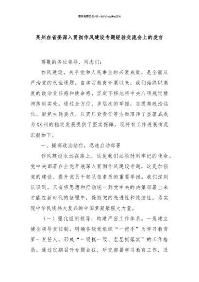 【七哥公文】2025年:【七哥公文】某州在省委深入贯彻作风建设专题经验交流会上的发言+更多免费公文+VX:QiGeGongWen2024+更多免费公文+VX:QiGeGongWen2024