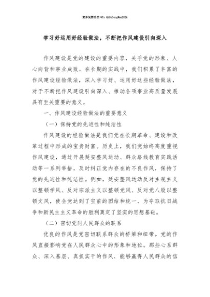 【七哥公文】2025年:【七哥公文】学习好运用好经验做法,不断把作风建设引向深入+更多免费公文+VX:QiGeGongWen2024+更多免费公文+VX:QiGeGongWen2024