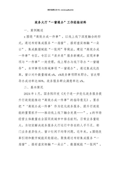 【七哥公文】2025年:【七哥公文】政务大厅“一窗通办”工作经验材料+更多免费公文+VX:QiGeGongWen2024+更多免费公文+VX:QiGeGongWen2024