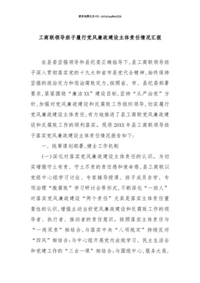 【七哥公文】2025年:【七哥公文】工商联领导班子履行党风廉政建设主体责任情况汇报+更多免费公文+VX:QiGeGongWen2024+更多免费公文+VX:QiGeGongWen2024