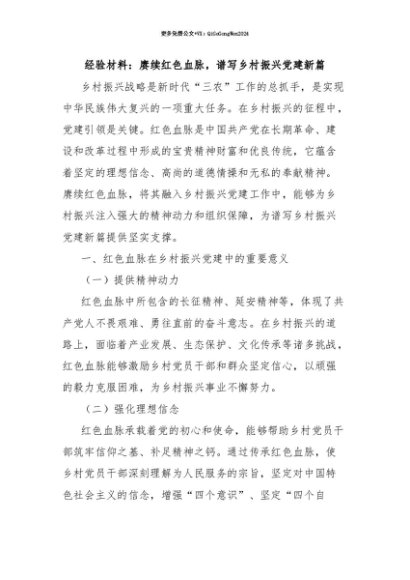 【七哥公文】2025年:【七哥公文】经验材料:赓续红色血脉,谱写乡村振兴党建新篇+更多免费公文+VX:QiGeGongWen2024+更多免费公文+VX:QiGeGongWen2024