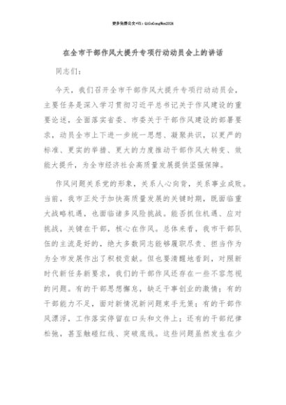 【七哥公文】2025年:【七哥公文】在全市干部作风大提升专项行动动员会上的讲话+更多免费公文+VX:QiGeGongWen2024+更多免费公文+VX:QiGeGongWen2024
