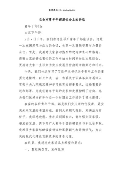 【七哥公文】2025年:【七哥公文】在全市青年干部座谈会上的讲话+更多免费公文+VX:QiGeGongWen2024+更多免费公文+VX:QiGeGongWen2024