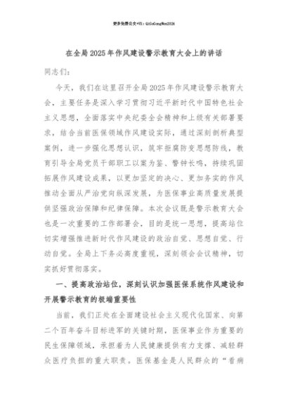 【七哥公文】2025年:【七哥公文】在全局2025年作风建设警示教育大会上的讲话+更多免费公文+VX:QiGeGongWen2024+更多免费公文+VX:QiGeGongWen2024