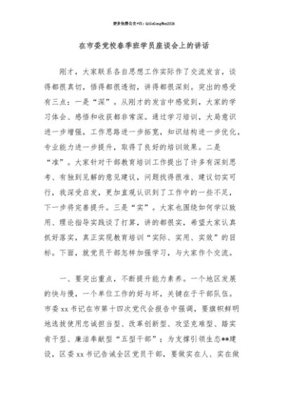 【七哥公文】2025年:【七哥公文】在市委党校春季班学员座谈会上的讲话+更多免费公文+VX:QiGeGongWen2024+更多免费公文+VX:QiGeGongWen2024