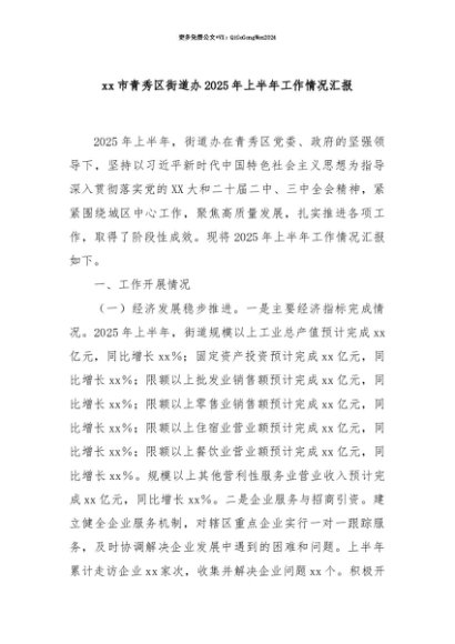 【七哥公文】2025年:【七哥公文】xx市青秀区街道办2025年上半年工作情况汇报+更多免费公文+VX:QiGeGongWen2024+更多免费公文+VX:QiGeGongWen2024