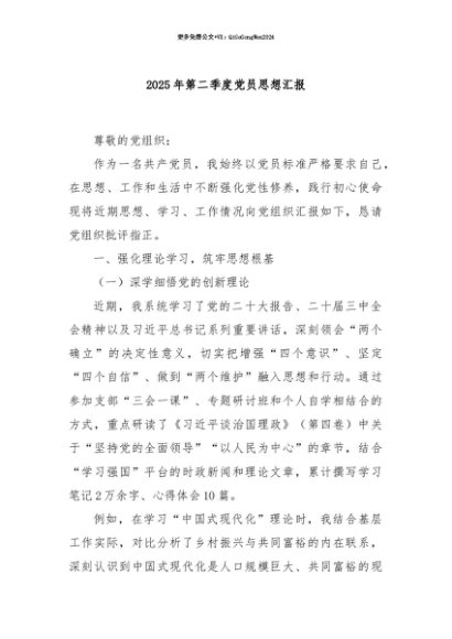 【七哥公文】2025年:【七哥公文】2025年第二季度党员思想汇报+更多免费公文+VX:QiGeGongWen2024+更多免费公文+VX:QiGeGongWen2024