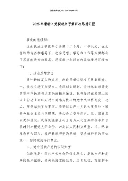 【七哥公文】2025年:【七哥公文】2025年最新入党积极分子第四次思想汇报+更多免费公文+VX:QiGeGongWen2024+更多免费公文+VX:QiGeGongWen2024