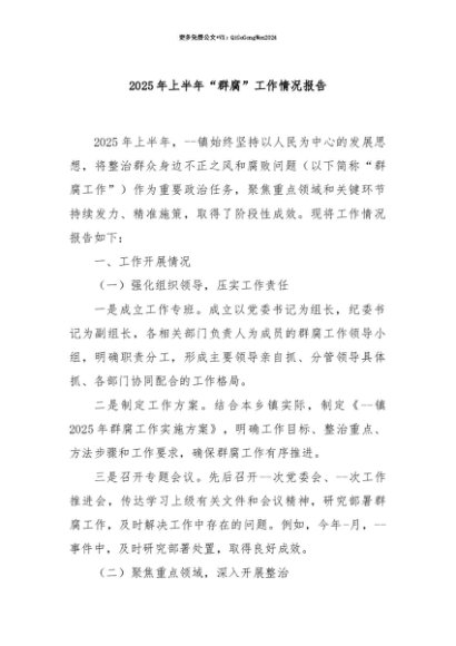 【七哥公文】2025年:【七哥公文】2025年上半年“群腐”工作情况报告+更多免费公文+VX:QiGeGongWen2024+更多免费公文+VX:QiGeGongWen2024