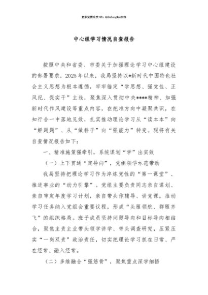 【七哥公文】2025年:【七哥公文】中心组学习情况自查报告+更多免费公文+VX:QiGeGongWen2024+更多免费公文+VX:QiGeGongWen2024