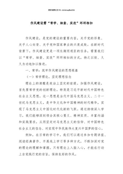 【七哥公文】2025年:【七哥公文】作风建设需“常学、细查、实改”环环相扣+更多免费公文+VX:QiGeGongWen2024+更多免费公文+VX:QiGeGongWen2024