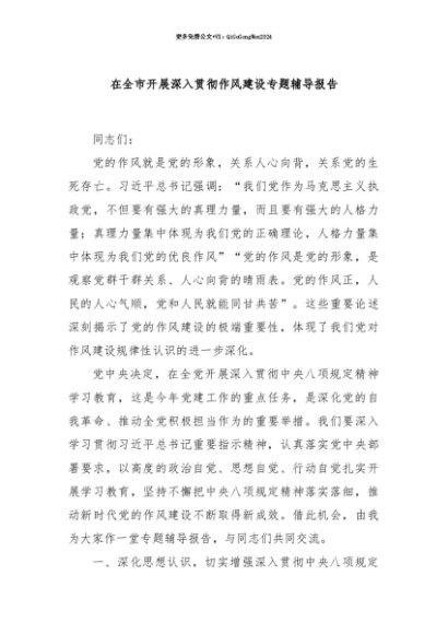 【七哥公文】2025年:【七哥公文】在全市开展深入贯彻作风建设专题辅导报告+更多免费公文+VX:QiGeGongWen2024+更多免费公文+VX:QiGeGongWen2024
