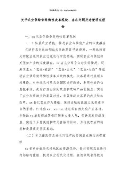 【七哥公文】2025年:【七哥公文】关于农业供给侧结构性改革现状、存在问题及对策研究报告+更多免费公文+VX:QiGeGongWen2024+更多免费公文+VX:QiGeGongWen2024
