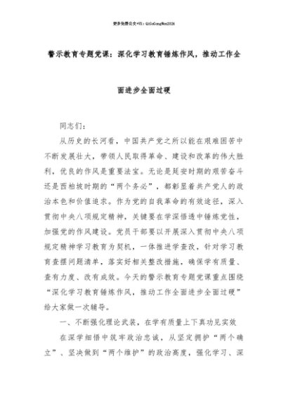 【七哥公文】2025年:【七哥公文】警示教育专题党课:深化学习教育锤炼作风,推动工作全面进步全面过硬+更多免费公文+VX:QiGeGongWen2024+更多免费公文+VX:QiGeGongWen2024