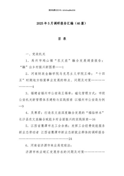 【七哥公文】2025年:【七哥公文】(46篇)2025年5月调研报告汇编+更多免费公文+VX:QiGeGongWen2024+更多免费公文+VX:QiGeGongWen2024