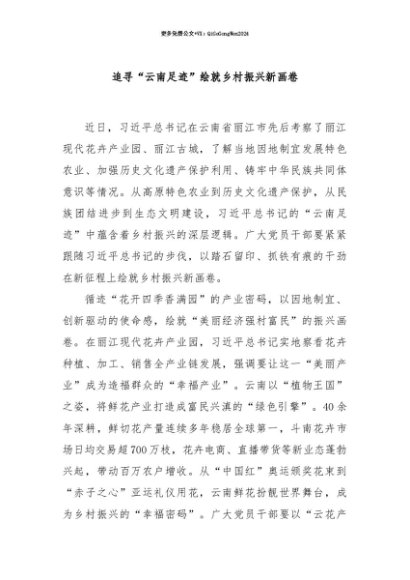 【七哥公文】2025年:【七哥公文】追寻“云南足迹”绘就乡村振兴新画卷+更多免费公文+VX:QiGeGongWen2024+更多免费公文+VX:QiGeGongWen2024