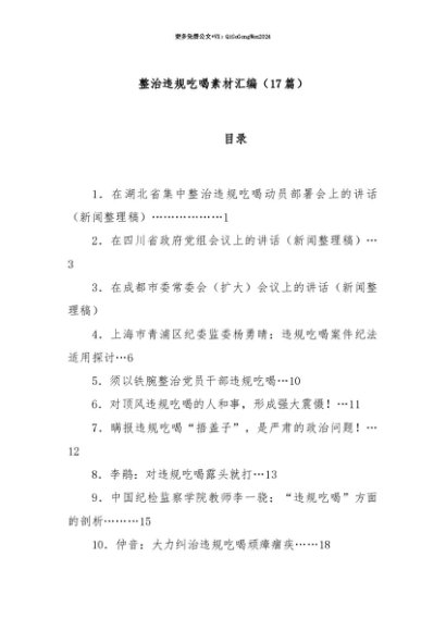 【七哥公文】2025年:【七哥公文】(17篇)整治违规吃喝素材汇编+更多免费公文+VX:QiGeGongWen2024+更多免费公文+VX:QiGeGongWen2024