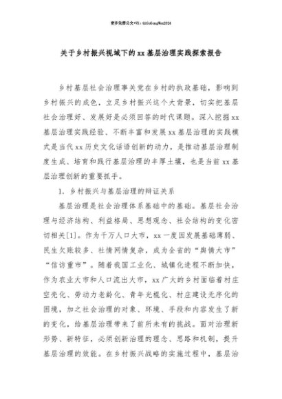 【七哥公文】2025年:【七哥公文】关于乡村振兴视域下的xx基层治理实践探索报告+更多免费公文+VX:QiGeGongWen2024+更多免费公文+VX:QiGeGongWen2024