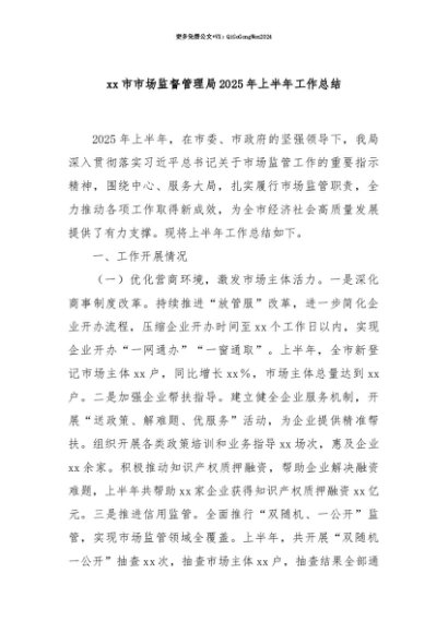 【七哥公文】2025年:【七哥公文】xx市市场监督管理局2025年上半年工作总结+更多免费公文+VX:QiGeGongWen2024+更多免费公文+VX:QiGeGongWen2024