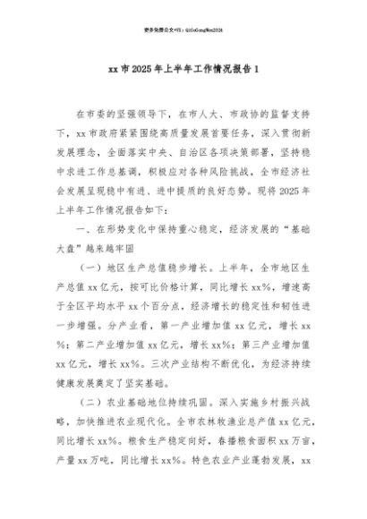 【七哥公文】2025年:【七哥公文】xx市2025年上半年工作情况报告1+更多免费公文+VX:QiGeGongWen2024+更多免费公文+VX:QiGeGongWen2024