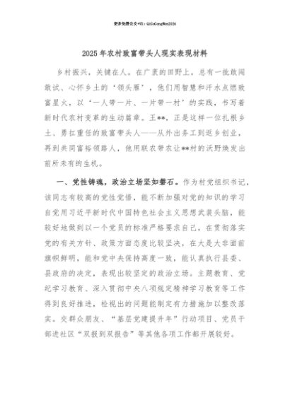 【七哥公文】2025年:【七哥公文】2025年农村致富带头人现实表现材料+更多免费公文+VX:QiGeGongWen2024+更多免费公文+VX:QiGeGongWen2024