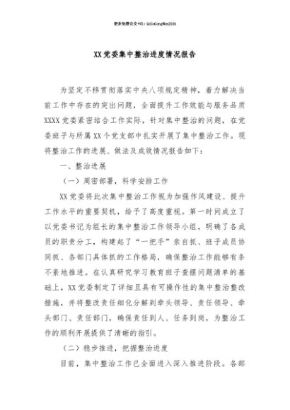 【七哥公文】2025年:【七哥公文】XX党委集中整治进度情况报告+更多免费公文+VX:QiGeGongWen2024+更多免费公文+VX:QiGeGongWen2024