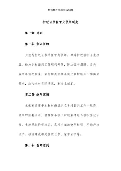 【七哥公文】2025年:【七哥公文】11.村级证书保管及使用制度+更多免费公文+VX:QiGeGongWen2024+更多免费公文+VX:QiGeGongWen2024