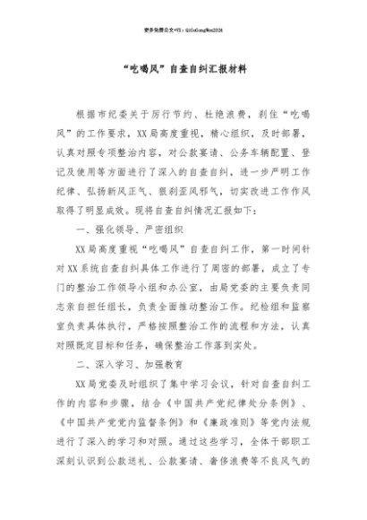 【七哥公文】2025年:【七哥公文】“吃喝风”自查自纠汇报材料+更多免费公文+VX:QiGeGongWen2024+更多免费公文+VX:QiGeGongWen2024