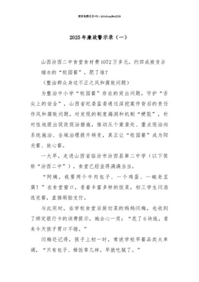 【七哥公文】2025年:【七哥公文】2025年廉政警示录(一)+更多免费公文+VX:QiGeGongWen2024+更多免费公文+VX:QiGeGongWen2024