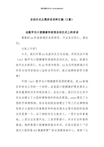 【七哥公文】2025年:【七哥公文】(3篇)启动仪式主题讲话材料汇编+更多免费公文+VX:QiGeGongWen2024+更多免费公文+VX:QiGeGongWen2024